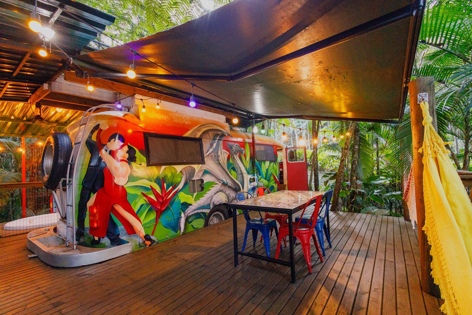 Com uma cama de casal e um beliche, este espaço é ideal para adultos e crianças. Oferece uma ampla varanda com deck, toldo retrátil e uma rede de descanso para momentos de tranquilidade. Inclui uma ducha a gás com vista panorâmica e uma banheira ao ar livre (com água quente e fria, sem hidro).